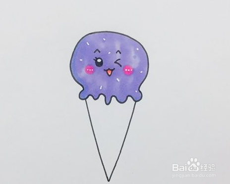 最后给蛋筒涂上颜色,这样冰淇淋就画好啦!