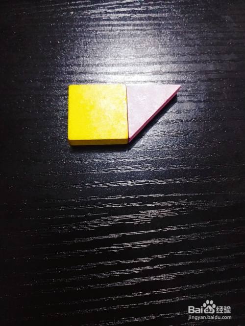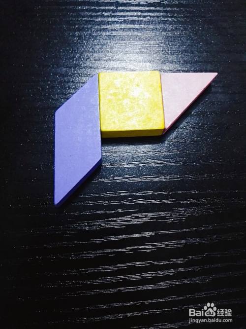 拿出一个紫色平行四边形板放在黄色正方形板的左边,如图所示。