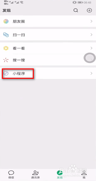 打开微信,点击小程序,如图所示。