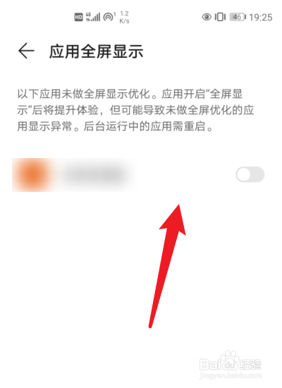 5、最后选择可以开启全屏的应用,滑动滑块打开即可。