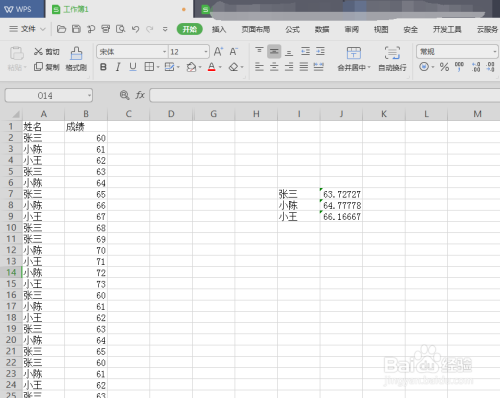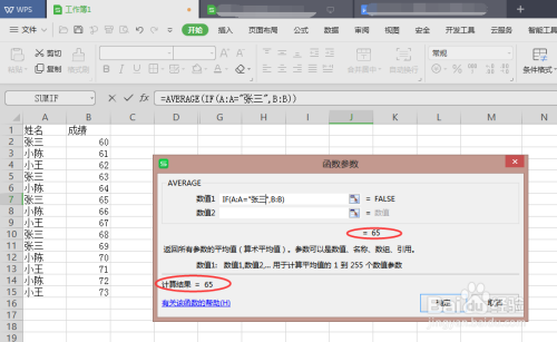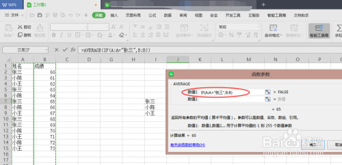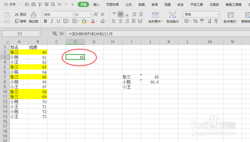 做好之后,我们可以手工来计算下,验证下结果,下图中,我们求出张三成绩的平均值和用公式做出来的是一样的,说明公式做的没有问题。