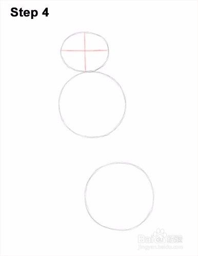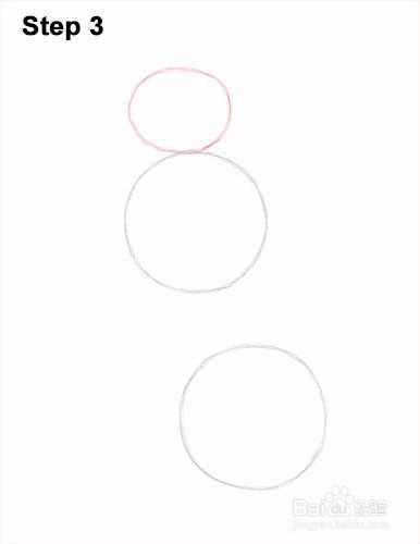第二步:在第一个下面画一圈,作为企鹅身体下半部的指南。这个圆应该与第一个大小相同,稍微偏离右边。不要将它们彼此拉得太远,否则鸟的躯干会太长。