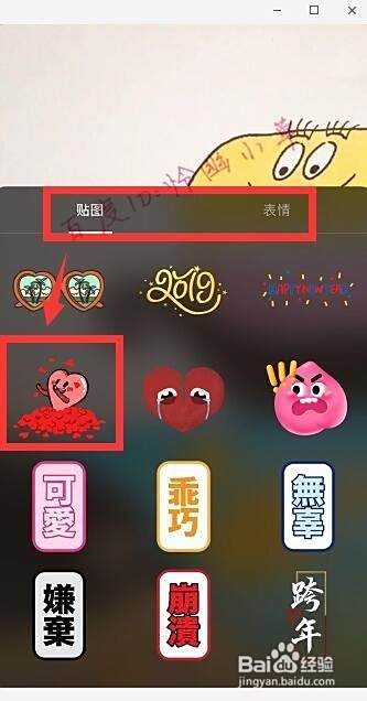 这里就可以选择贴图、表情了,我们随便选择一个进去。