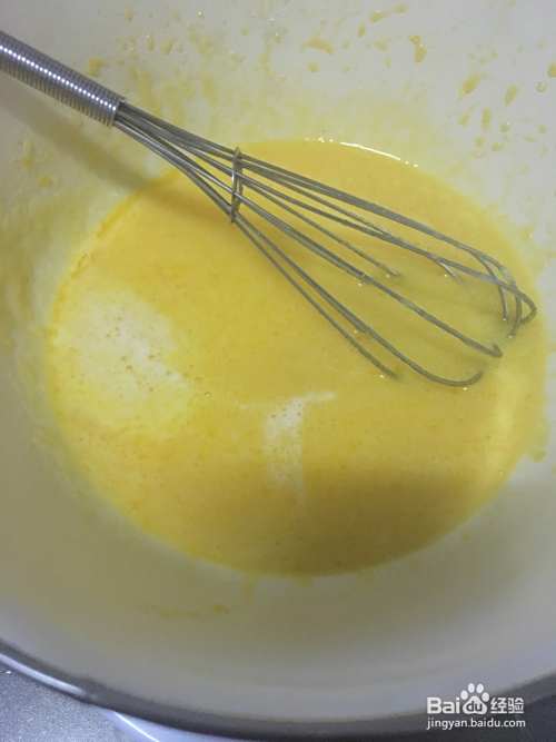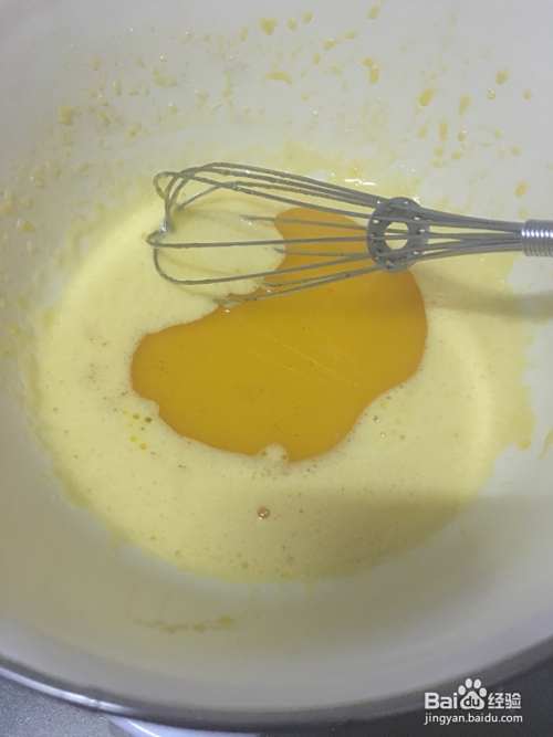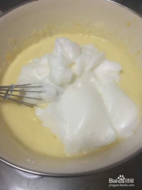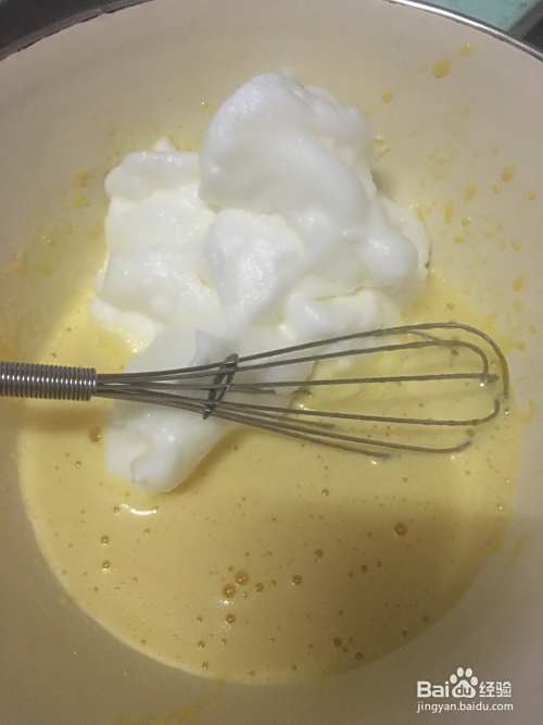 把一半的蛋白加入蛋黄溶液中拌匀