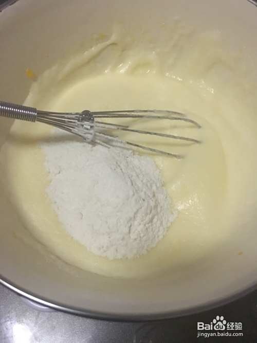 拌匀后加入低筋粉和泡打粉拌匀