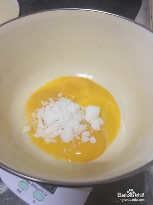 蛋黄和蛋白分离,蛋黄加糖打散搅拌均匀