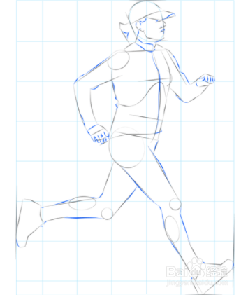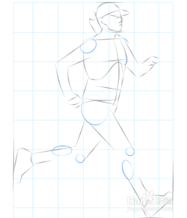 为单肩、臀部、脚踝和小腿绘制椭圆形。添加第二个肩膀和胸部指导线。