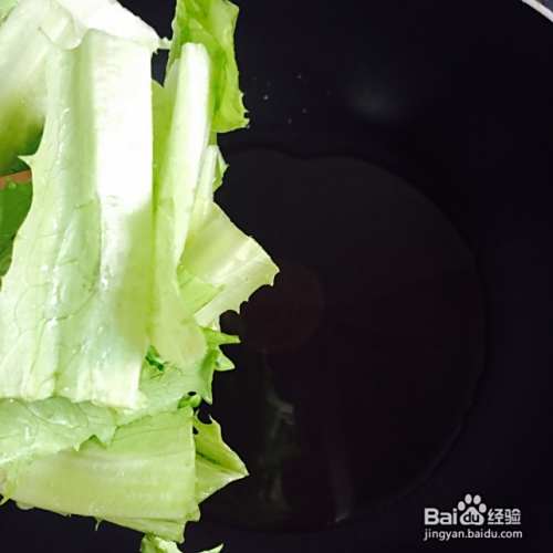 将油麦菜一片片掰开之后,用清水清洗干净,清洗油麦菜的时候可以加一小勺盐,这样可以去掉油麦菜苦涩的味道。