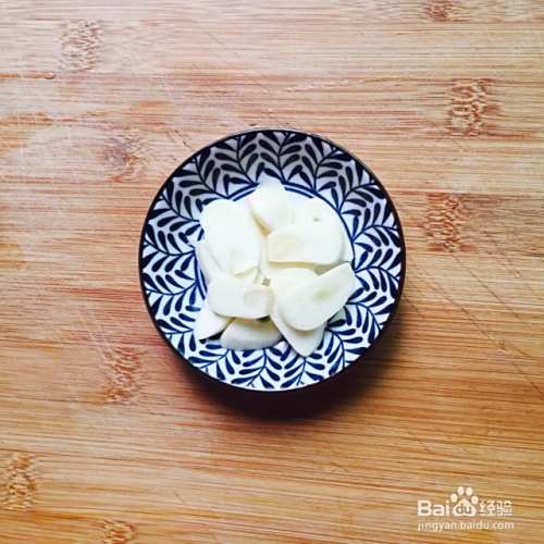 翻炒几下之后放入切好的蒜片,将蒜味炒出香味即可。