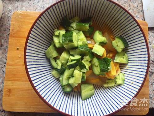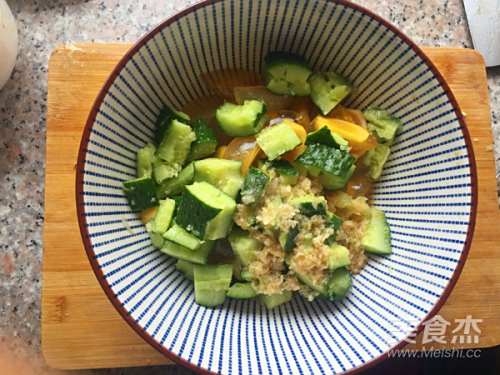 8用筷子搅拌的话容易把皮蛋搅碎,两只手捧着碗来回颠几下即可。