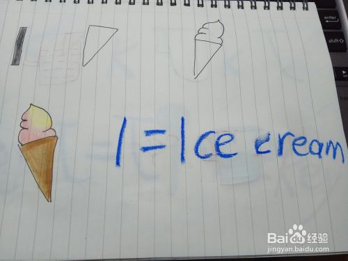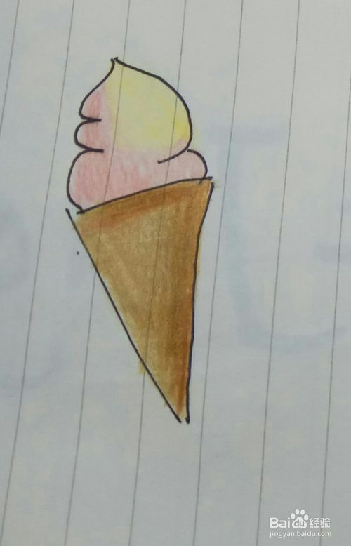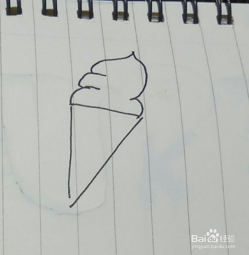 主要是按照字母I的结构,画出冰淇淋下方的甜筒,可以稍微倾斜一点。