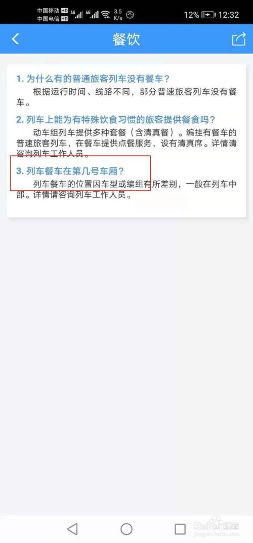 如下所示,即可查看列车餐车在第几号车厢。
