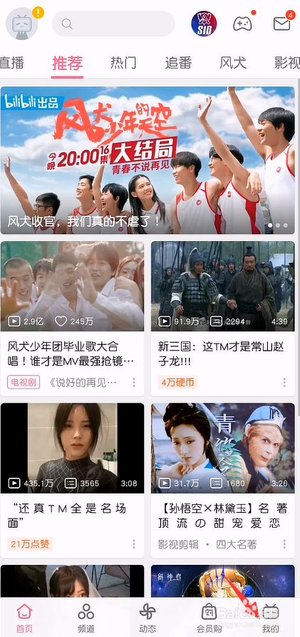 在哔哩哔哩首页页面,点击右侧位置【我的】图标。