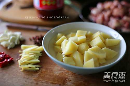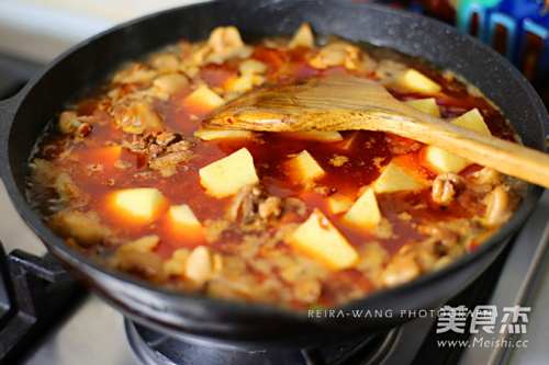 7最后放入土豆,注入清水没过鸡块和土豆,大火烧开;