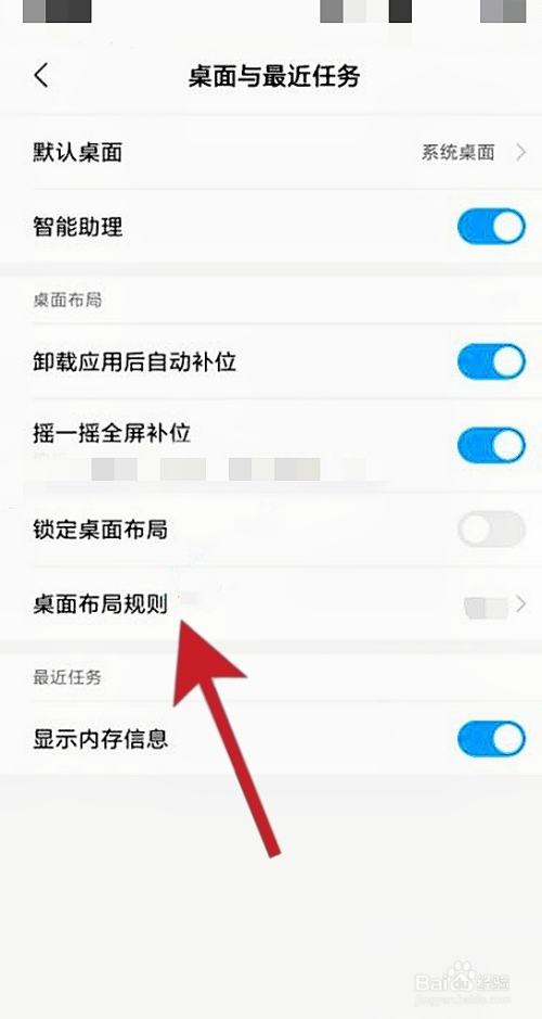 打开桌面与最近任务页面后,进入桌面布局规则。