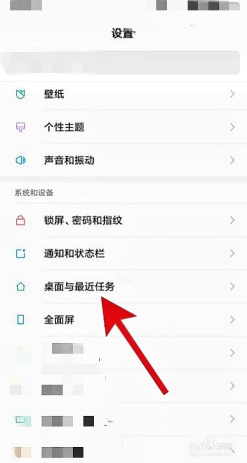 进入手机设置功能,然后打开桌面与最近任务页面。
