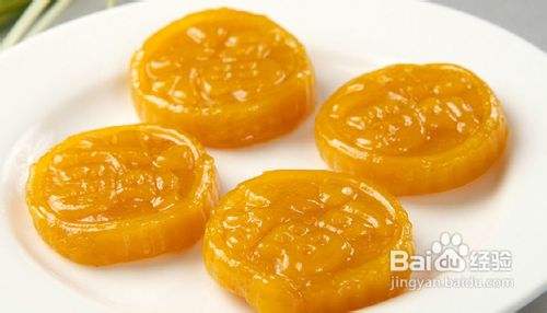 糯米粉加南瓜及调味料搅匀,揉成面团,每25克一个面剂,包入15克莲蓉馅,再制成南瓜形状。