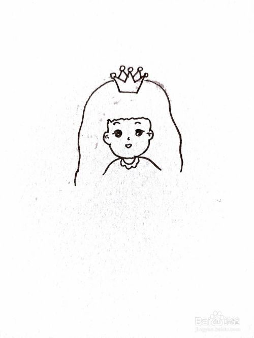 在王冠下面画头发和脸部轮廓。