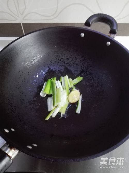4锅中放入适量的植物油,温热时放入葱姜,炒出香味