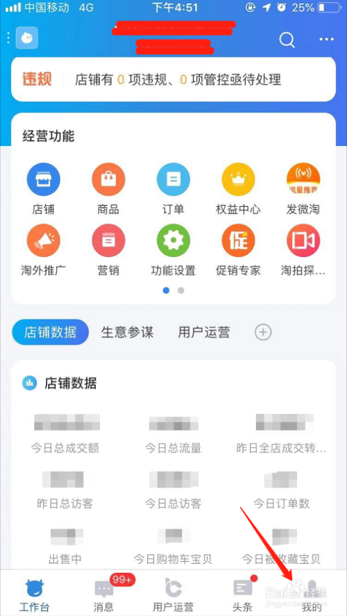 首先进入手机端千牛工作台页面!点击下方“我的”命令!如图所示!