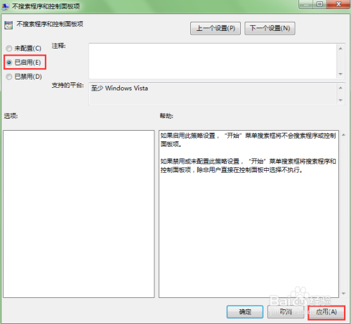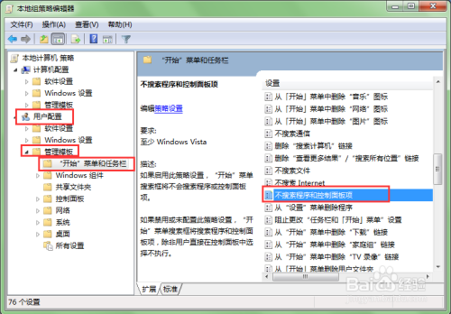 本经验介绍如何通过windows的组策略设置来限制用户在开始菜单检索控制面板项