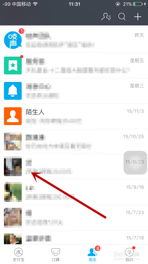 进入到朋友界面我们找到要举报的账户记录,点击进入聊天框;