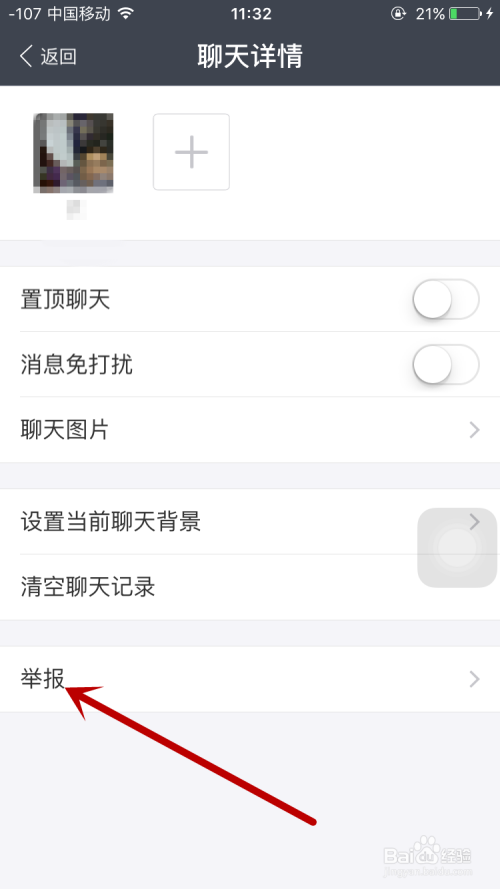 进入到聊天详情界面,这里我们点击最下方的举报;