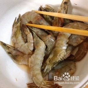 新鲜虾洗干净,剪去虾须,去虾线,用料酒、盐腌制虾10分钟