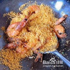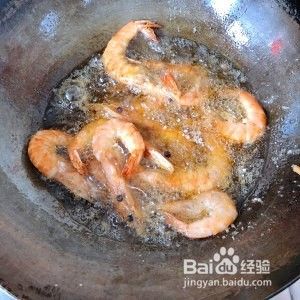 热锅下油, 将下下过来炸至虾身卷起变色,炸成香脆捞起