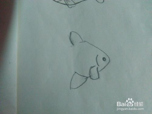 我们再画一种另样的鱼,身子是扁的,嘴巴尖尖的,如图所示。