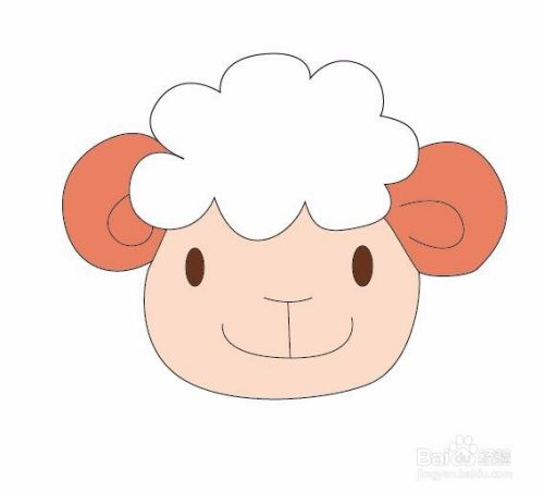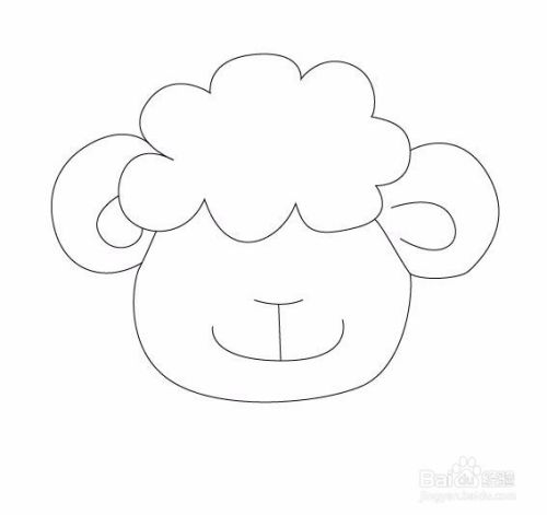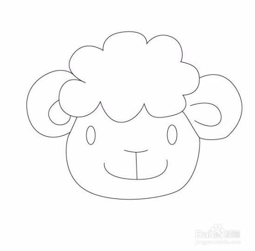再在脸部上面画出小羊的两只耳朵,如图所示: