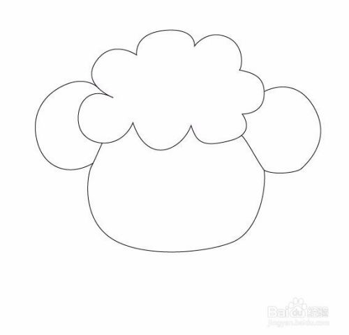 在小羊毛发的下面画出小羊的面部轮廓,如图所示: