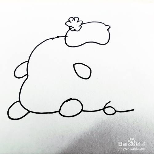 第三步,诉获扯我们来画卡通大熊猫的四肢和耳朵的黑色。