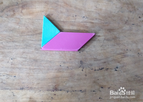摆上蓝色三角形,右侧摆上平行四边形挨着,如图。