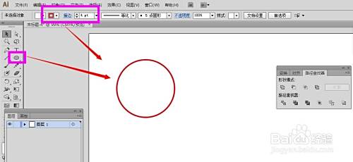 然后选中红色正圆,按住键盘的alt键,单击下形状模式的第一种联集,表示赋予这个红色正圆联集作用