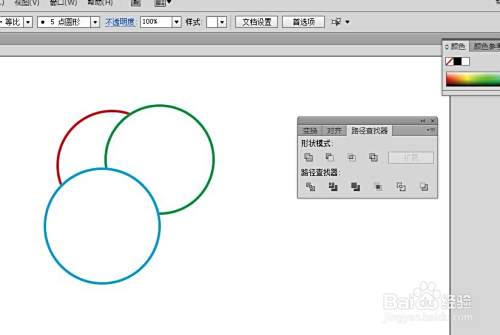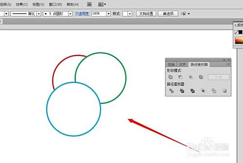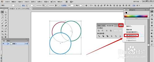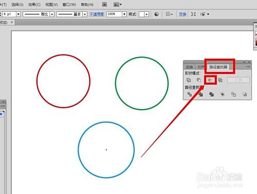 全部选中三个正圆,在路径查找器面板旁边的按钮点击,找到“建立复合形状”选项,点击它