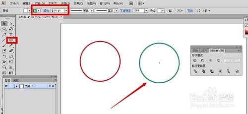 接着继续使用椭圆形工具,在红色正圆旁边,绘制一个绿色正圆图形,