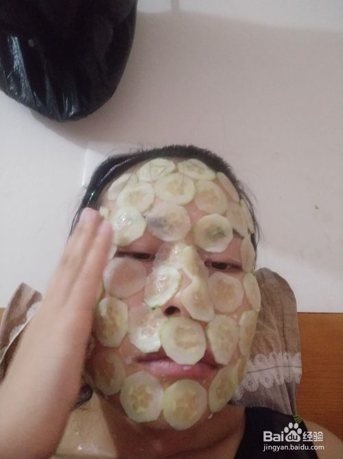 把黄瓜贴在脸部,贴的时候会滴奶,要用毛巾或纸把滴的奶擦干净,贴好以后记得拍拍,使脸部的吸收更好些;