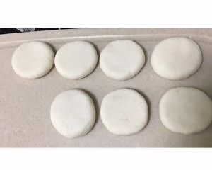 将蒸熟的山药压成泥放入白糖,糯米粉搅拌均匀