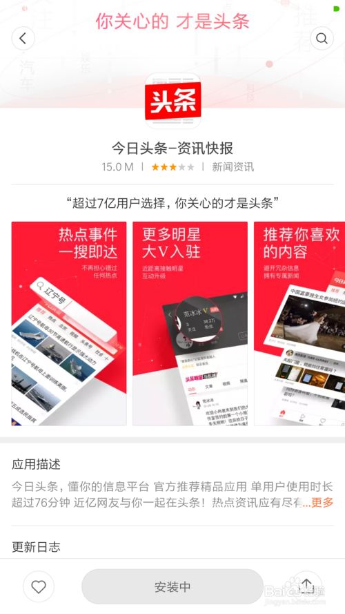 2.1首先准备好一个手机,安卓手机或者ios手机都可以,在手机软件商店搜索“今日头条”两个字,下载软件,并将软件安装到手机上,如图
