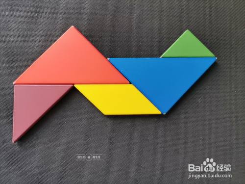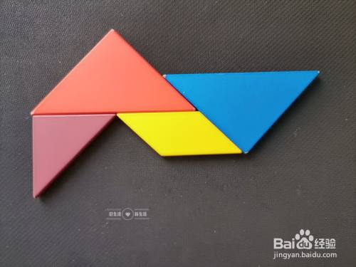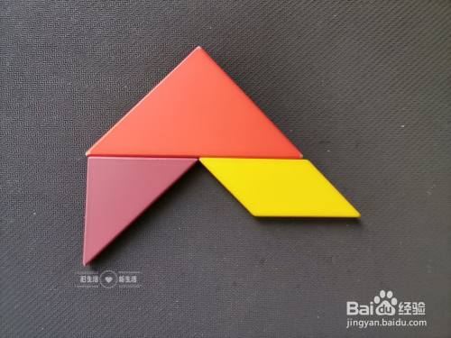 拿出一个黄色平行四边形放在红色大三角形的下面,如下图所示。