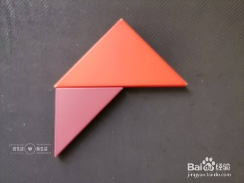 拿出一个红色大三角形和一个咖啡色中三角形,把它拼成下图的样子。
