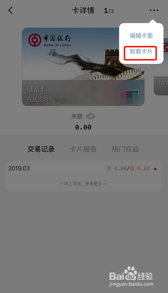 点击后在出来的选项中点击【卸载卡片】,如图所示!