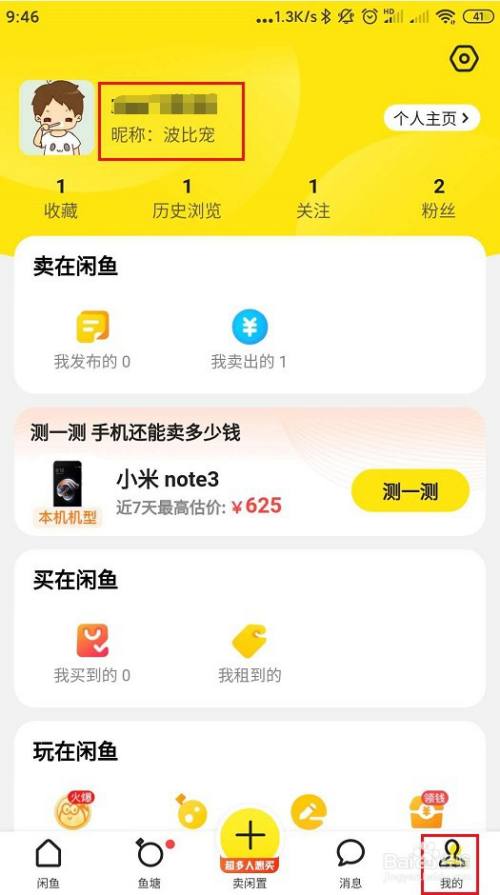 打开闲鱼,点击进入底部菜单“我的”页面。