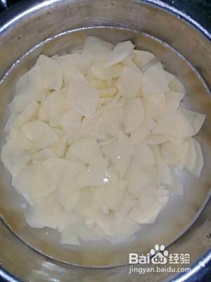 土豆去皮洗净切片,放入水中浸泡,去掉淀粉,多淘几次。
