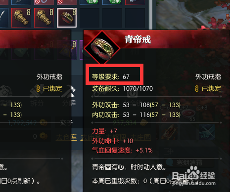首先准备一个加力量或者气海(根据职业)的装备,注意等级。