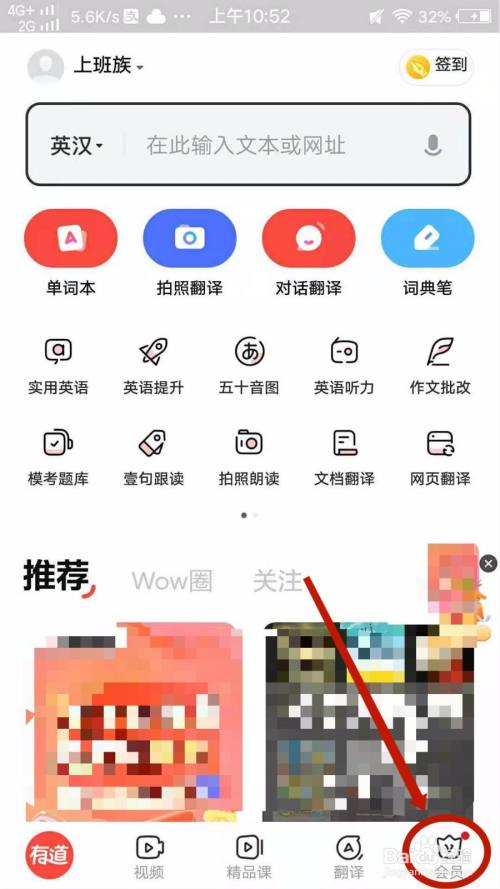 1、手机登录有道词典,如图