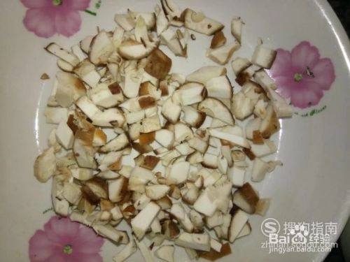 取3-4个鲜香菇,将鲜香菇清洗干净,再切成小碎块;