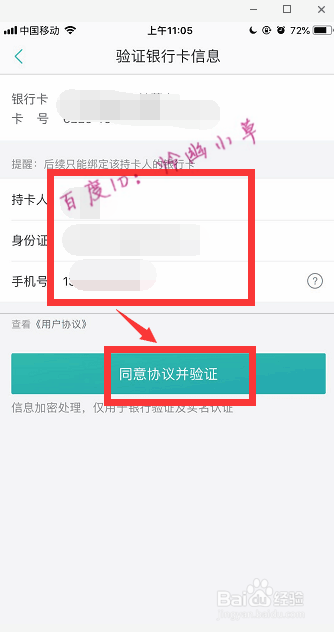 输入姓名、身份证和手机号,点击“同意协议并验证”。