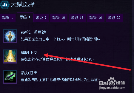 使惩击的移动速度提高10%,持续时间延长1秒,因为大天使的平A攻击是很高的伤害,所以需要移动速度保证能够多次平A到目标身上。